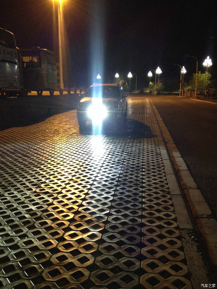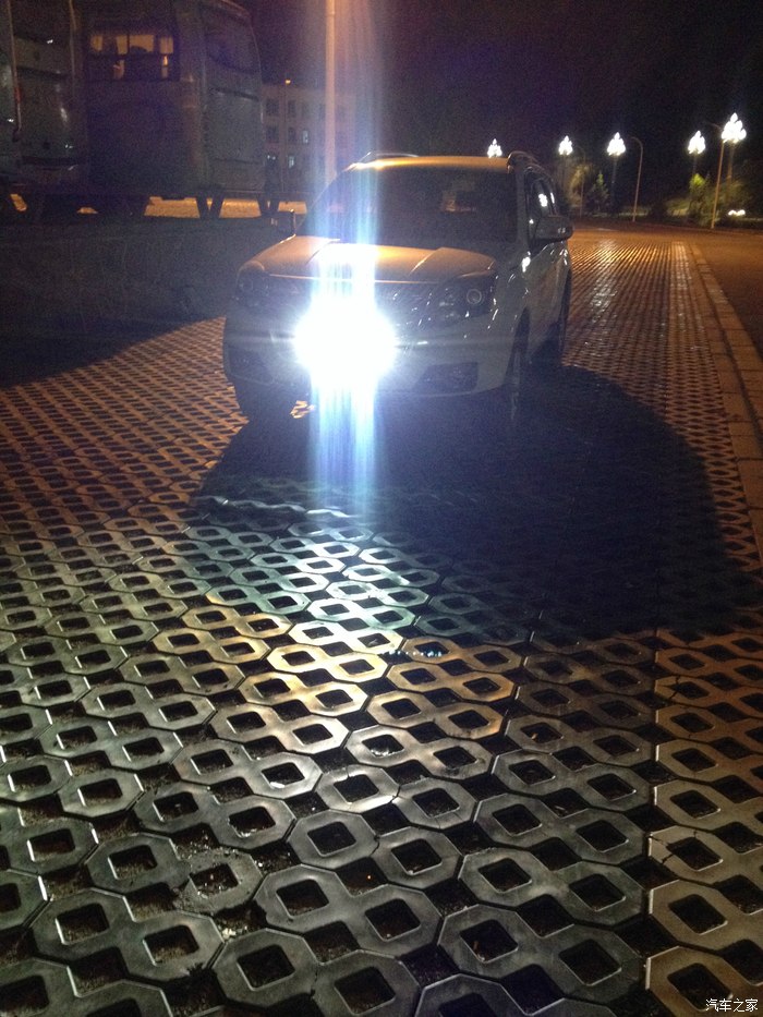 射灯安装好之后昨天找了一段比较黑的路跑了一下,感觉效果很不错,以后走漆黑的路可以直接开一个射灯就搞定了,射灯开启之后把车头左右两边都一起照亮了,原车的灯不管是近光还是远光都没办法照亮。这样以后开车可以随时看到路边会不会有人或者其他停放在路边的车辆,增加了夜晚行车的安全性。看看今天晚上有没有时间再去找一条漆黑的路照几张射灯开启的照片,上面的照片环境光太亮了,总感觉不出LED的亮度。