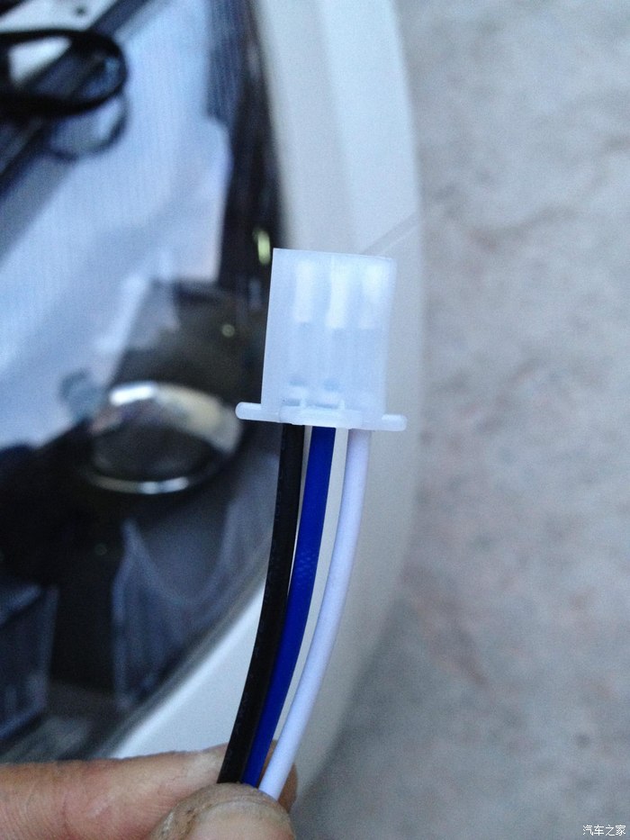 开关端是线是公母头连接的,穿进驾驶舱需要把线和母头里面取出来,然后走胶套位置穿进去。穿线的时候先找一根铁丝走驾驶位下面的胶套里面穿出去,然后铁丝的一头折一个小勾,勾出从母头里面取出来的三根线,然后把铁丝拉进驾驶室就搞定了,最好重新把线插进母头里面,然后和开关端的公头对接。
