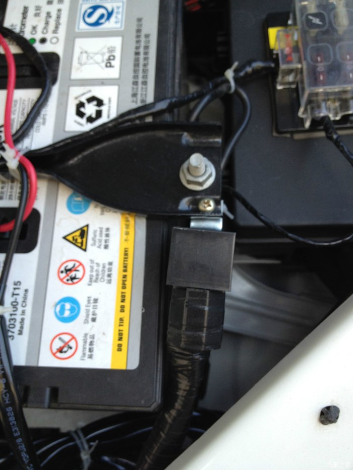 然后把剩余的线全部用扎带绑起来固定在电瓶的下端。
