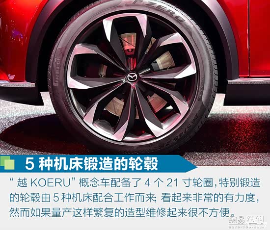 “越KOERU”概念车采用全新的魂动设计风格,马自达无一例外再次推出了一款让世人为之惊艳的设计。极端接近量产的设计风格,或许让我们看到了“CX-4”的最终样貌。我们知道,目前一汽马自达(微博)在售的车型包括马自达6 ATENZA阿特兹、马自达6、睿翼、马自达8、马自达CX-7,覆盖中型车、MPV和中型SUV市场。此外,一汽马自达汽车销售有限公司副总经理田青久之前也曾表示,一汽马自达将会推出一款与目前在售车型完全不同的全新产品,那么这款“越KOERU”未来或许将会成为“紧凑级跨界SUV”的全新定位.