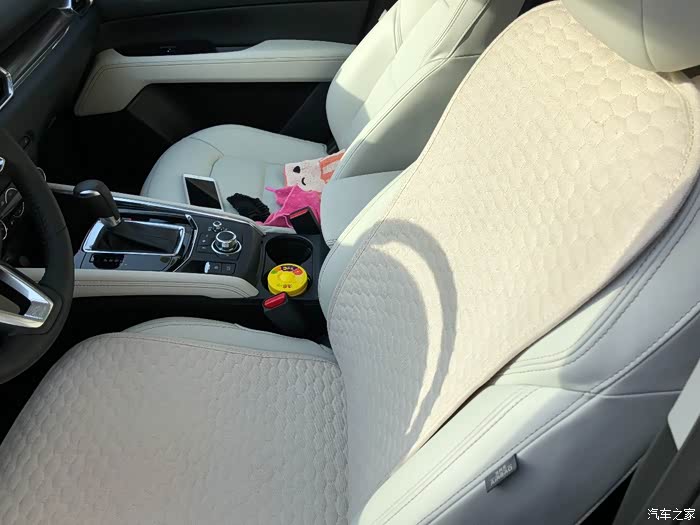 内饰配色的选择这次也十分大胆,选择了黑白搭的配色,依我的审美观黑配白是种永恒,有着即安全、百搭又低调、奢华的美。白色真皮座椅搭配白色车门内饰加上操控台两侧的白色皮革软包,显得十分的干净利落,非常有档次。有人会说白色不耐脏,我倒是感觉黑色更容易挂灰,勤快点什么颜色都一样。不过为了防止时间长白色皮革可能被染色,特意在X宝上买了一个坐垫,铺在驾驶位,小蛮腰设计即解决了问题,还不显得臃肿。