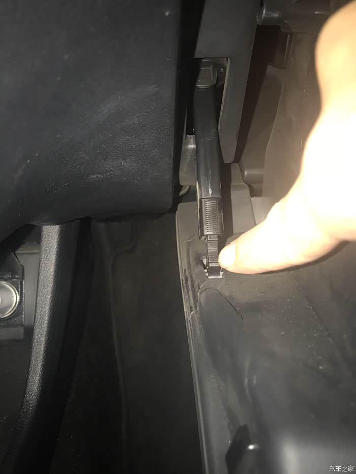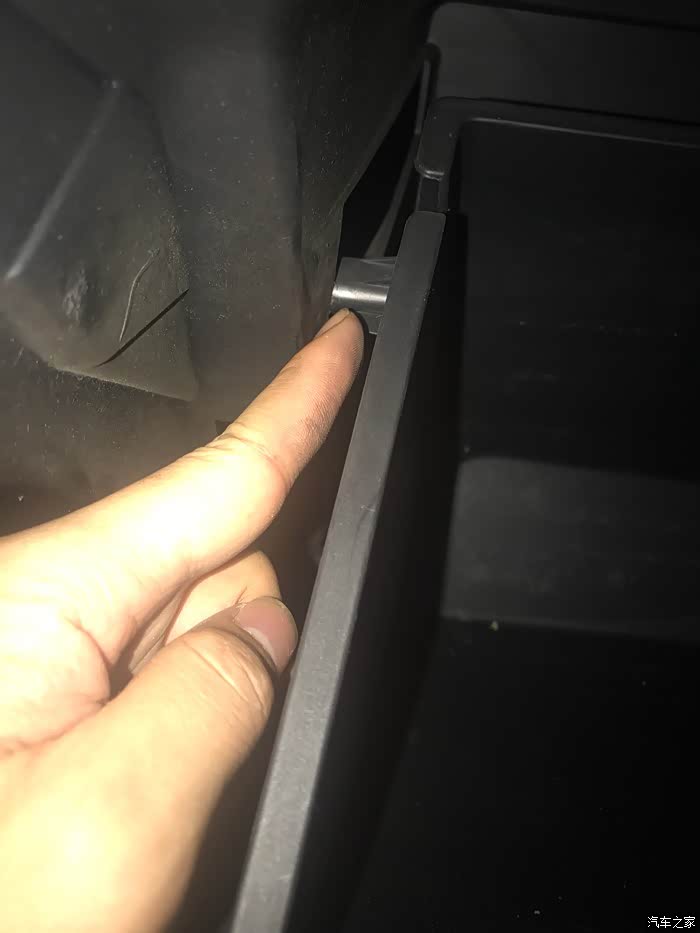 图片能看到左右都有一个定位销,左右手一起动哦,左右手一起向中间部位用力然后往下拉。就把副手箱拉开了!!