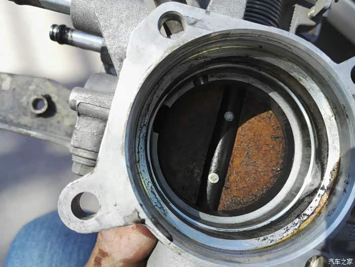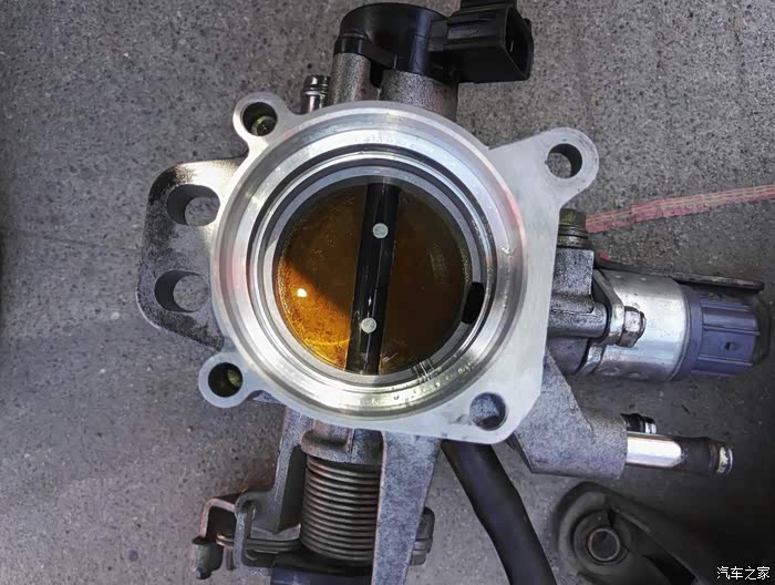 拆下来看 有些积碳了,用3M8866节气门清洗剂清洗,3M8866不损伤节气门内壁静电涂层和胶圈。