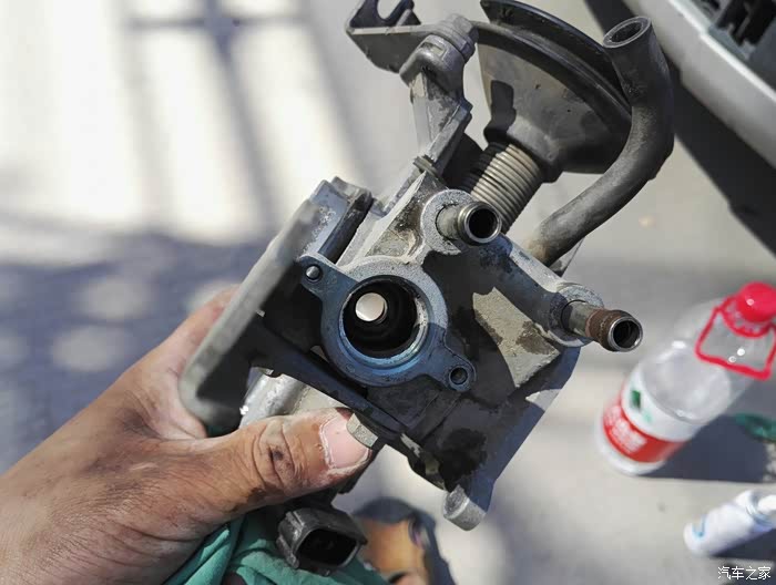 还没拆下的样子,上面有个白色塑料盖子要拿下来。拆卸和安装比较费劲。