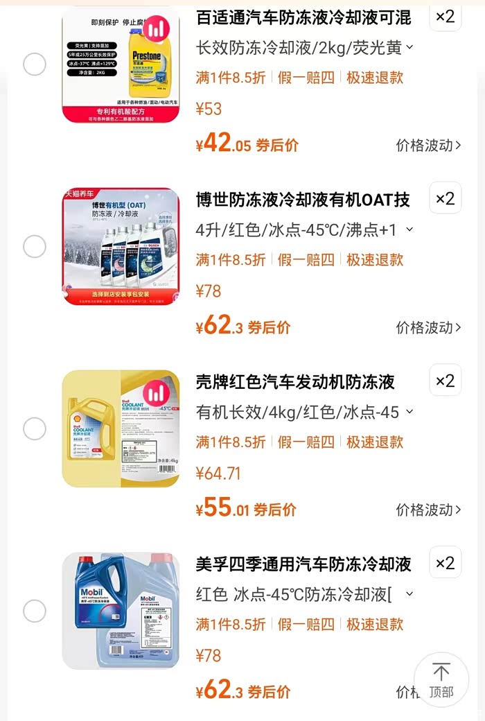 大佬们,这几款防冻液选择哪款?