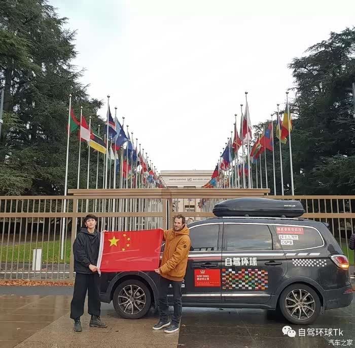 自驾环球的第152天,我们终于行车来到了日内瓦联合国万国宫,我举起五星红旗与各国国旗齐列,用实际行动向世人展示着中国制造的力量!