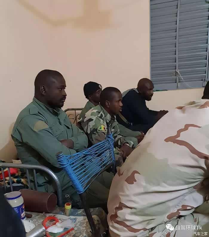 天色已晚,这片区域太危险,于是我们就在政府军驻扎地借宿了一晚,最后还和军人们一起看了场欧冠。
