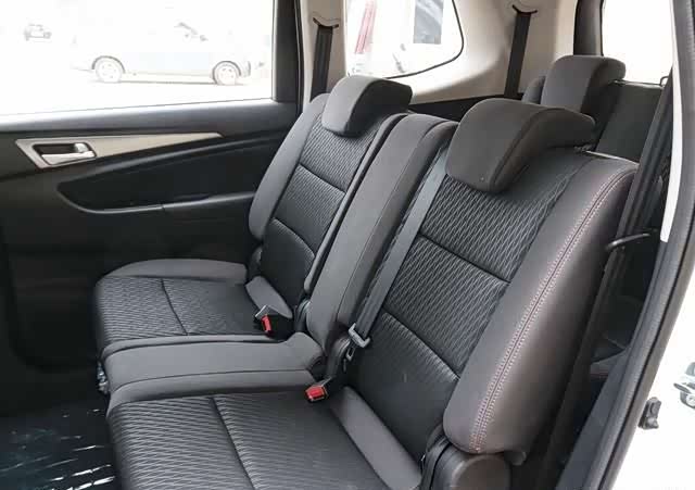 车内座椅表面为织物材质,坐垫和靠背中间使用了纹路点缀,能够起到一定的防滑作用;座椅造型中规中矩,前排主副驾驶位均为手动调节方式,且副驾驶位不支持位置高低调节。车内支持2+3+2和2+2+2两种座椅布局,后排座椅延续了前排设计风格,不过可以感觉到横向空间略微逊色;第三排座椅并没有因为位置靠后而在造型上缩水,第三排座椅支持整体放倒,用来提升车内实用空间。