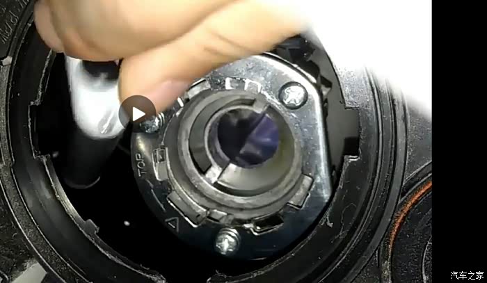 这是我从视频上截的图,近光拧开罩子卡环对准顺时针拧上就好