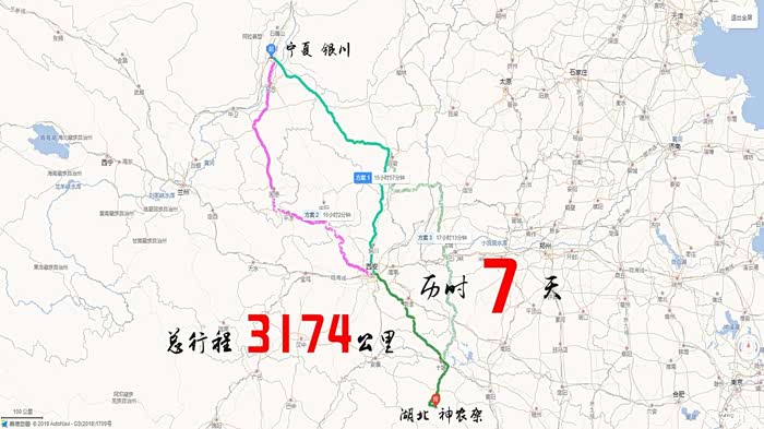 出发前所做的功课,从银川出发,来回行程3174公里,历时7天时间。