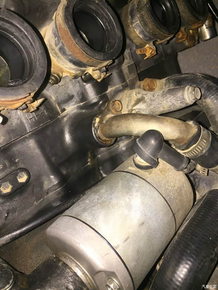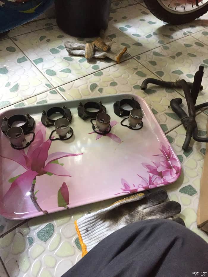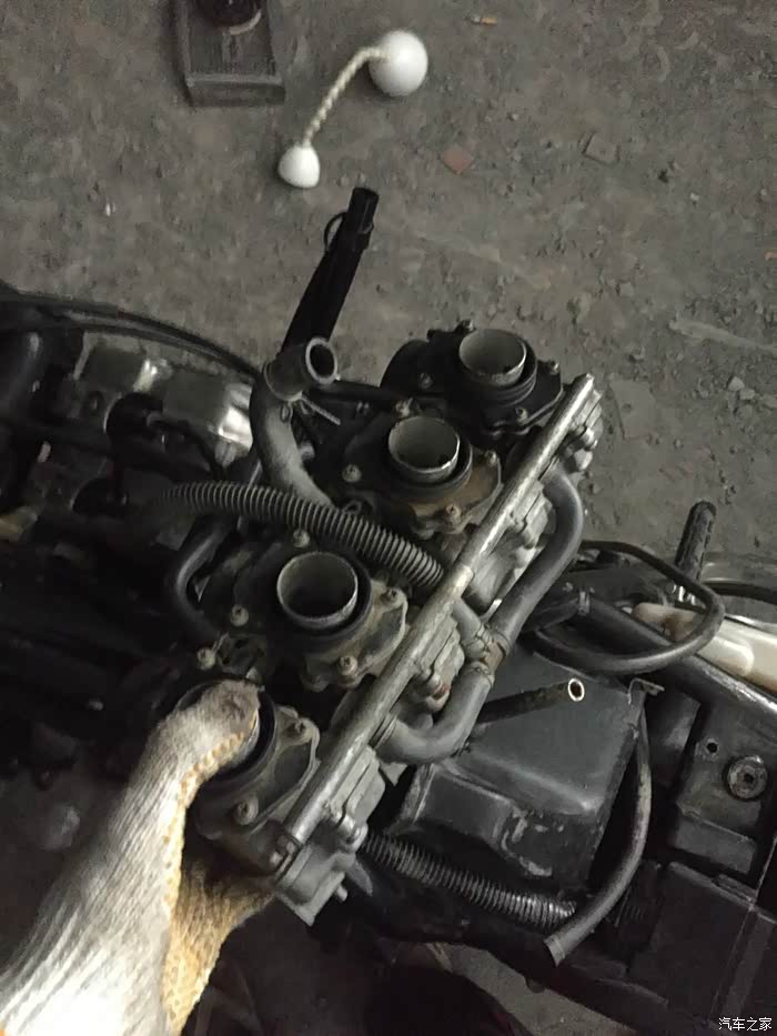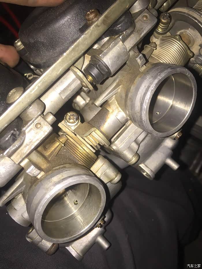 水温控制好了,感觉还是回油和提速还是达不到我想要的冷车时启动摸了4缸果然有一缸不工作,于是又败 了一个高压帽,但是问题依然没有解决,最后想把4缸当3缸开时发现既然有四个化油器,是不是化油堵了脏了?装不好搞坏了大不了买一幅,要抱着行就行,不行就不行的心态学习,拆。。。。