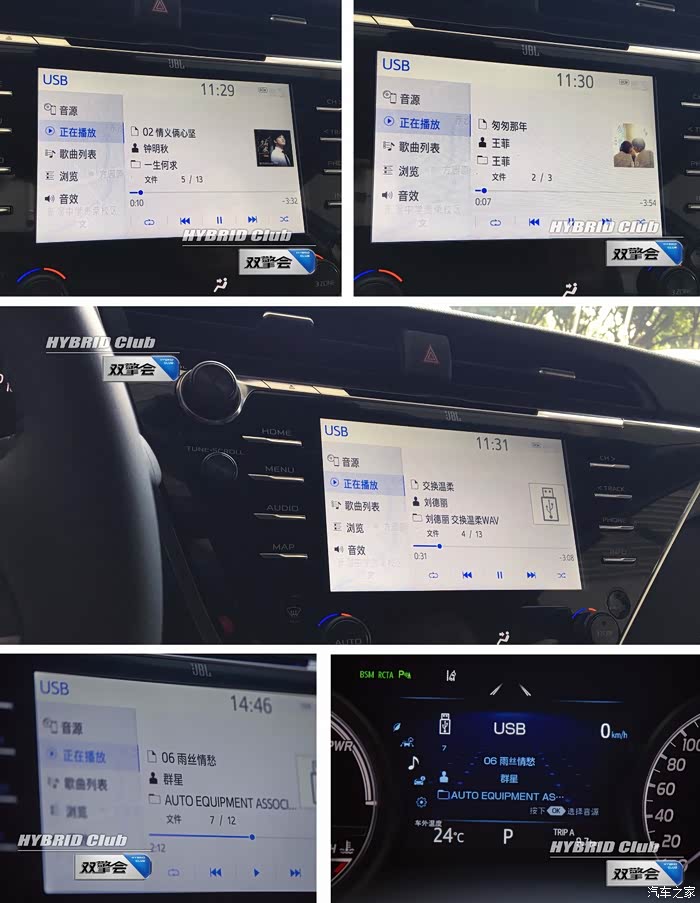 这次刻意带去几种平时我个人音乐库常见的音频文件,包括属于Hi-Res源自SACD音源的24bit 96khz FLAC,还有自己用CD抓轨的WAV,苹果m4a格式等,还有从QQ音乐和百度等网站下载的无损FLAC,结果在八代凯美瑞的车机上全部都可以优质播放,而且不分高低配,低配HG的车机一样可以,这实在是惊喜。只不过这次测试带去的文件还是略为保守,其实我更多保存的是用DSD(.DSF)格式存储的SACD音源,但并没有带来现场,因为出发前对于原来仅能播放mp3的丰田车机确实不抱有太多信心,带来几个觉得有可能的碰碰运气,没想到这么给力。不过,我依然觉得这款车机系统应该还是不支持DSD这类非商业社会用于正式发行音乐产品的文件格式的,希望下次能够用事实打我的脸吧!!
