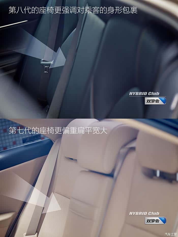 而我个人坐进第八代后排的时候,确实感觉不如第七代后排那样宽敞。但具体到坐在两边的大座椅上,还是挺舒服的,个人活动空间也足够,只是为何会有一种不够宽敞的感觉呢?为了“校对”,我反复坐入我自己那台第七代的后排对比感受,有以下“校对”体会: