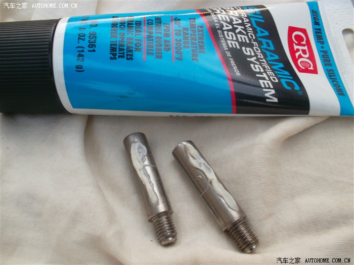 图八:装回卡钳销螺栓之前先用溶剂(如刹车部件清洗剂)将其表面清洁干净(需要用无纺布擦拭),然后涂上合格的润滑脂