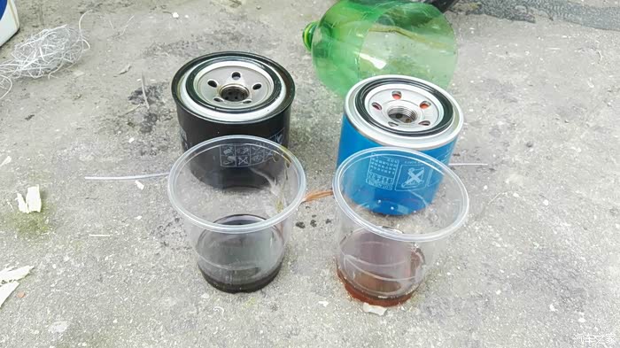 左边是1500KM 超凡灰,右边是全新机滤跟清洗油,机滤中倒出来的保证清洗油本色!