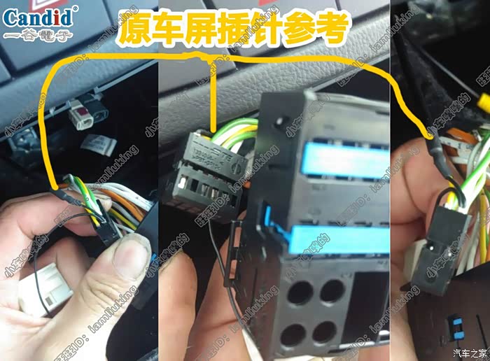 大家看这张图,最右边的两个小的插头就是插中控大屏哪里的,莲花头要转接,原装的不用的!!