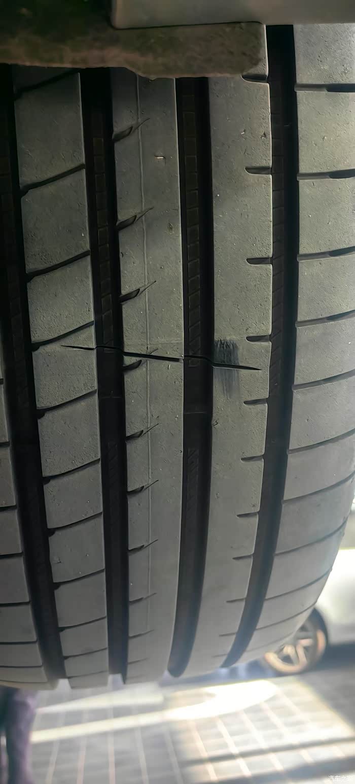 昨天去4s店保养发现轮胎有伤,4s店建议更换说容易爆胎,我这车开了不到一年,这轮胎感觉像是被刀割的一样,各位车友们帮看看需要换吗?