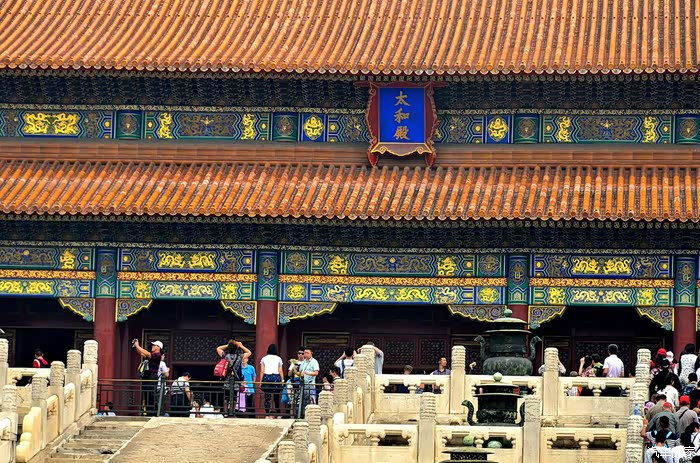 故宫位于北京市中心,。是明、清两代的皇宫,无与伦比的古代建筑杰作,世界现存最大、最完整的木质结构的古建筑群.