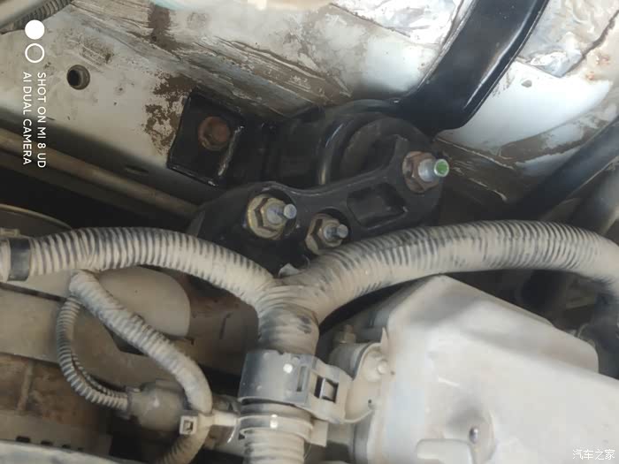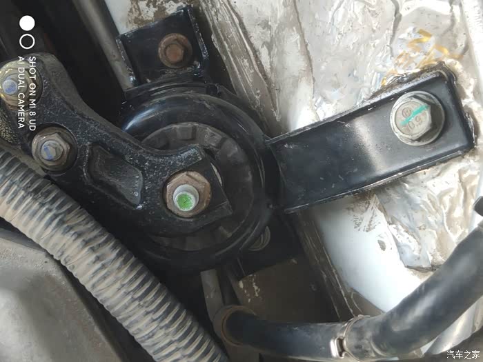 检查机脚跟发动机支架间隙。上紧7螺丝。大功告成。发动汽车手试车头左右翼子板位置无明显震动。试车2000转时声音有变化,幅度不大。2200-3000转,声音无明显变化。共振在可接受范围内。车内后视镜无模糊现象。这次改装的效果很满意。