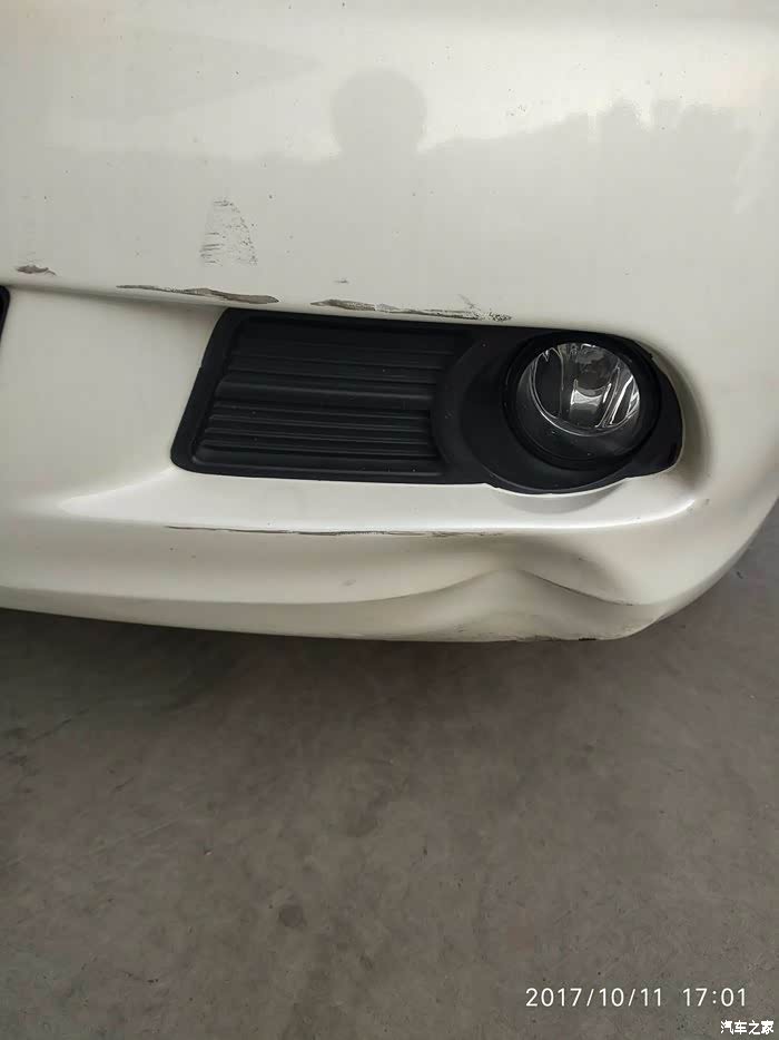 前两天。停车的时候没留意装上一个铁柱。把车头下面部分给撞凹了。。不过幸好。这个部分是塑料不是金属。。。。