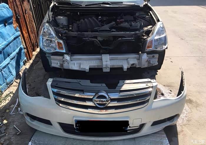经典轩逸前保险杆拆解(塑料部分撞凹,水烫没效果后的简单修复)
