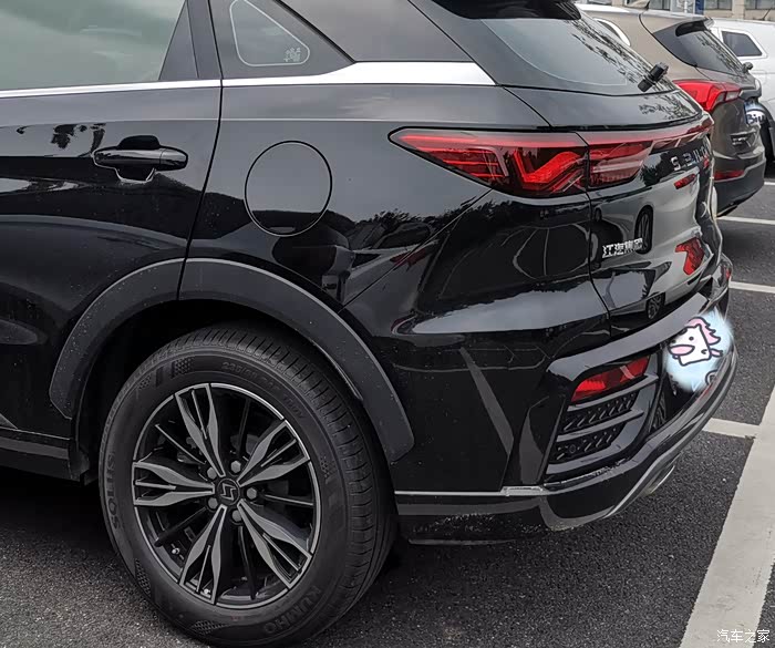 18寸轮胎看上去很厚实,而且轮毂的造型也蛮漂亮的