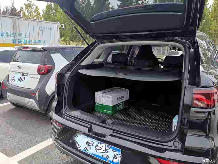 后备箱空间很大,一箱水在里面一点也不显眼。