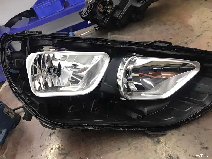 13,原车密封胶清理省略是一个漫长过程.......,这是左灯近光位透镜安装完样子