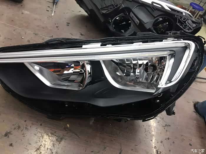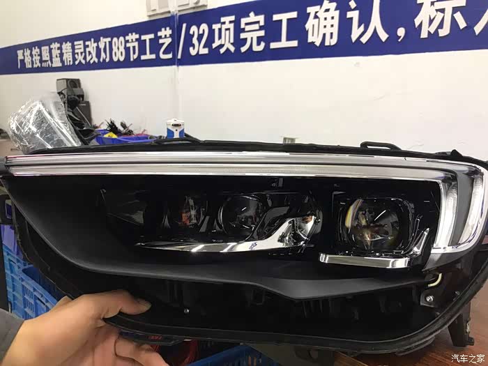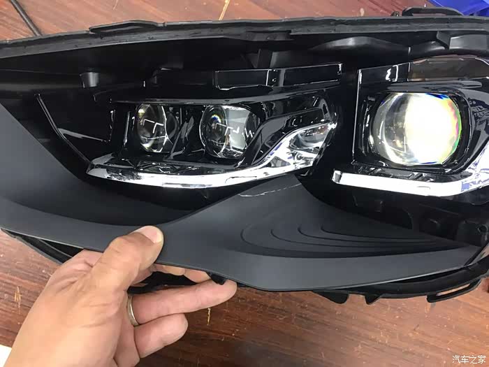 23,左灯内部日行灯导光条与黑色装饰框安装完,按上面数据修割看不出任何修割痕迹,二次擦拭大灯内部所有装饰件,做到无尘,