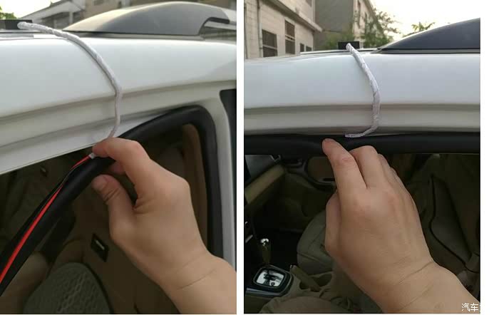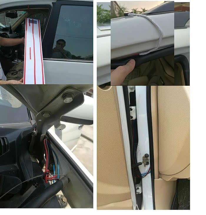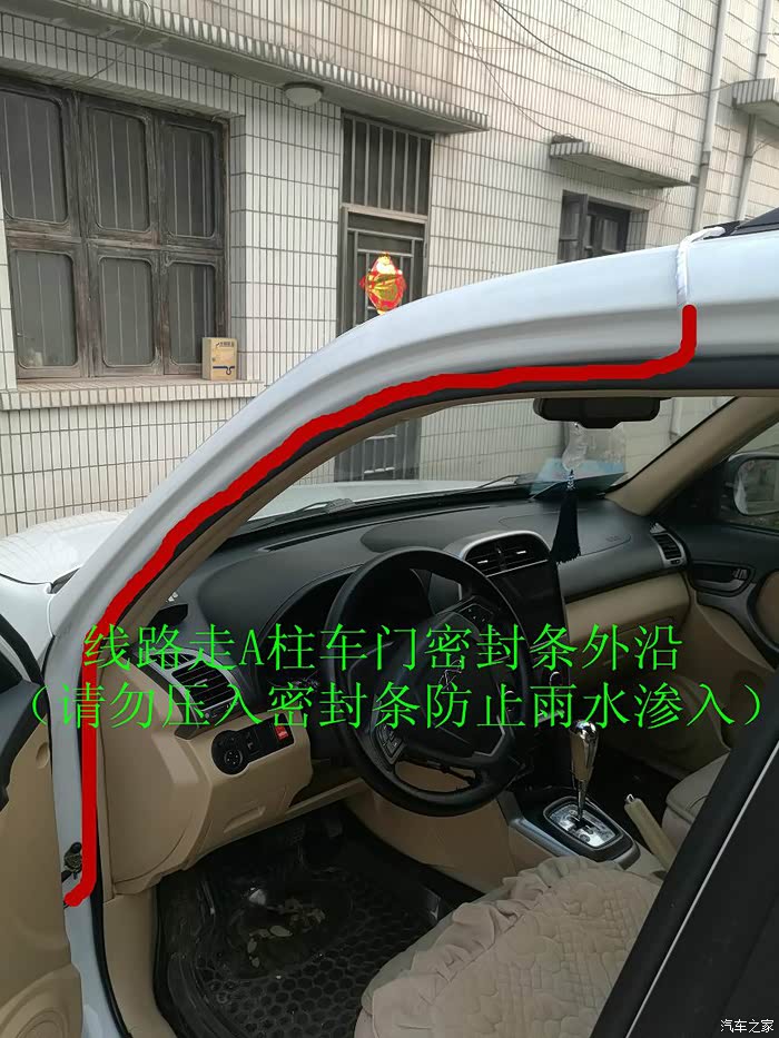 将板子上贴上双面胶(卖家有送) 将线压进车门密封条 用钢丝牵引电线(铁丝)传入发动机舱内