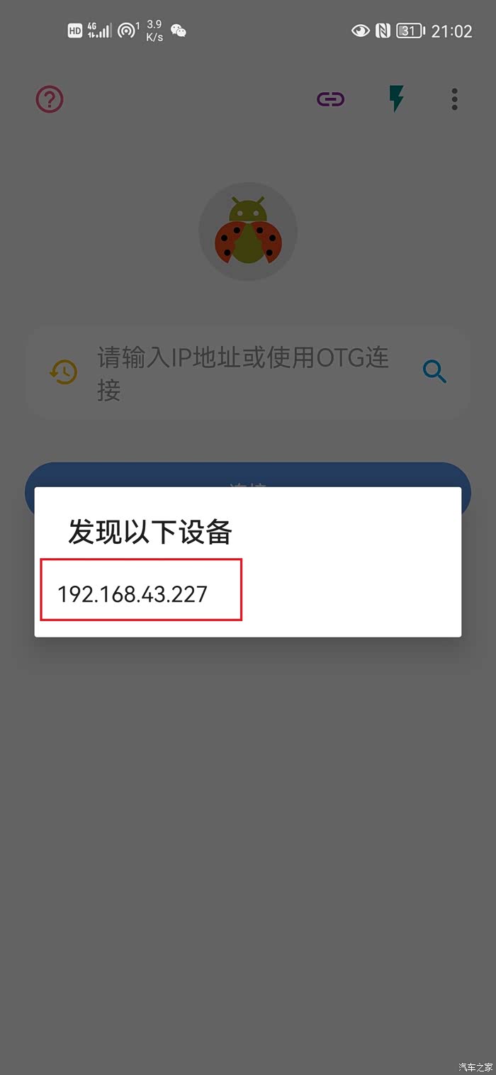 搜索到车机IP,并记住这个IP,点击这个ip进行连接
