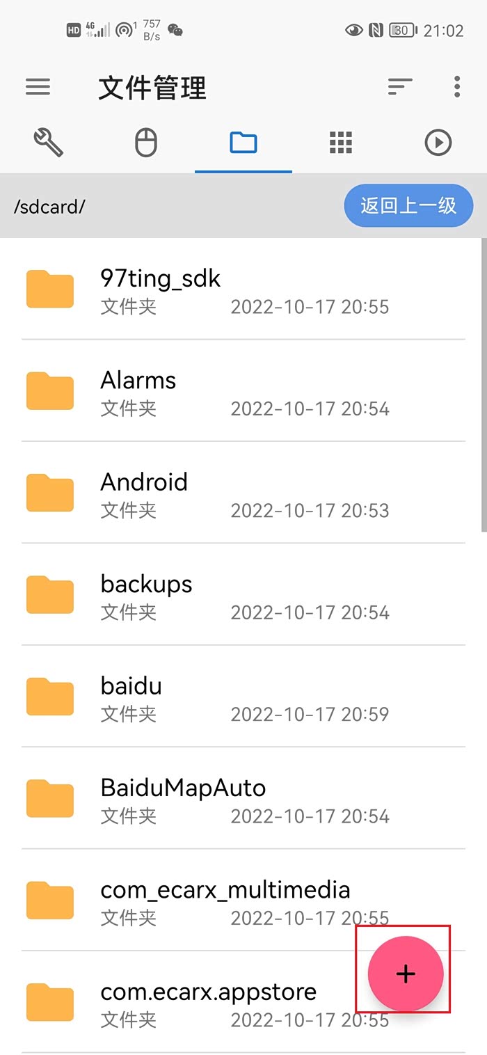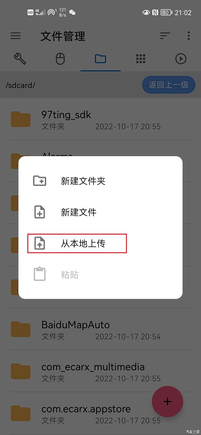 (3)点击右下角“+”号,“从本地上传”,进到手机存放路径找到要上传的mtk-su和第三方软件apk,进行上传