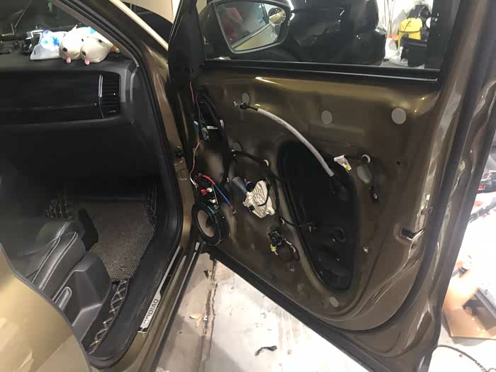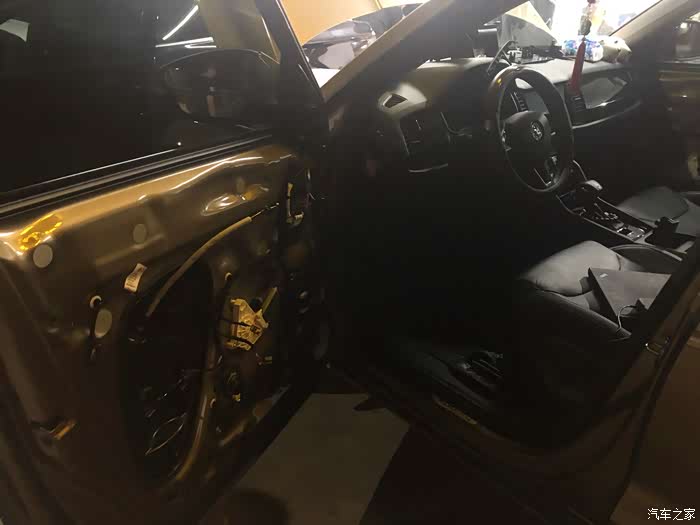 没穿入变色氛围灯之前的门板,不过也看不出什么明显区别来,窗口的音响标志不近看看不出来,换了劲浪的。