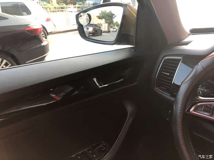 装完之后,就再也不用盲区镜片了。这个角度看门板却感觉一股强烈的塑料即视感,柯迪亚克这个价位的车还在用硬塑料,有点多少的说不过去呀。