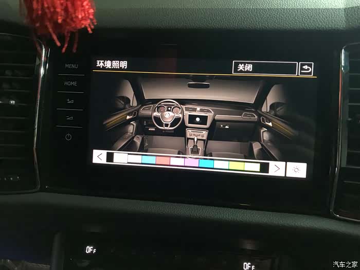 不过在国内使用的9.2的主机使用的并不是斯柯达系统,而是大众系统。斯柯达的9.2系统在国内似乎有些水土不服,总是不能完美地在液晶仪表实现地图,虽然后来得到了解决,但是却又没有能完美搞定9.2寸屏幕的型号。所以直接刷大众的9.2系统,不完美却比斯柯达的系统强大。此图已经有氛围灯加身了
