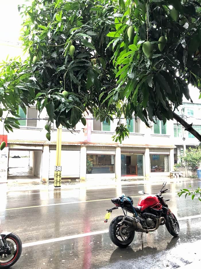 在永郎——米易的路上遇暴雨,对于安全驾驶而言是没法的了,为了人身和车辆安全就停在路边休息。路边的芒果树上满是绿油油的芒果,看着肚子都已经咕咕的叫了。