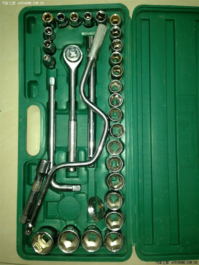 找同事借了一套套筒,还是32件的,看来得自己配一套小巧的适合车用、可以随时带在车上的了: