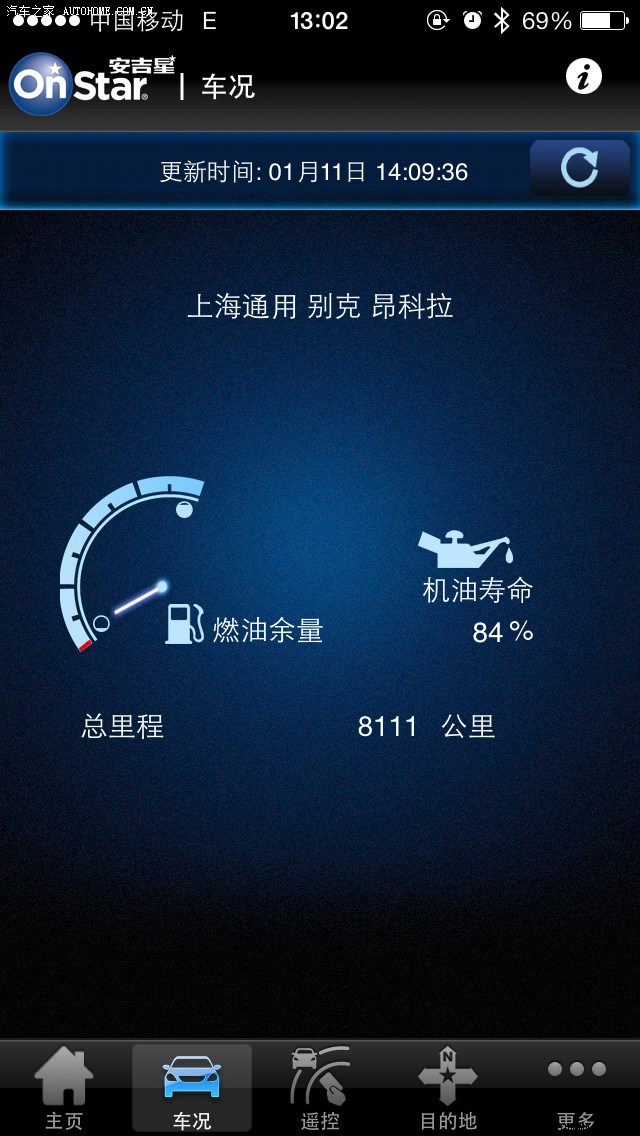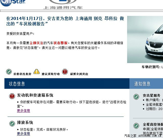 车子平时主要上班开开,每次也就3~5公里,偶尔也跑跑省城,来回200多公里;回回父母家,来回不到150公里。某天早上,发现仪表盘上的发动机黄灯亮了,当即通过安吉星了解了一下故障原因。安吉星给远程在线检测后告知,是发动机的进气系统故障,不影响安全使用,可能会对燃油消耗有一定的影响,具体以经销商检测为准。