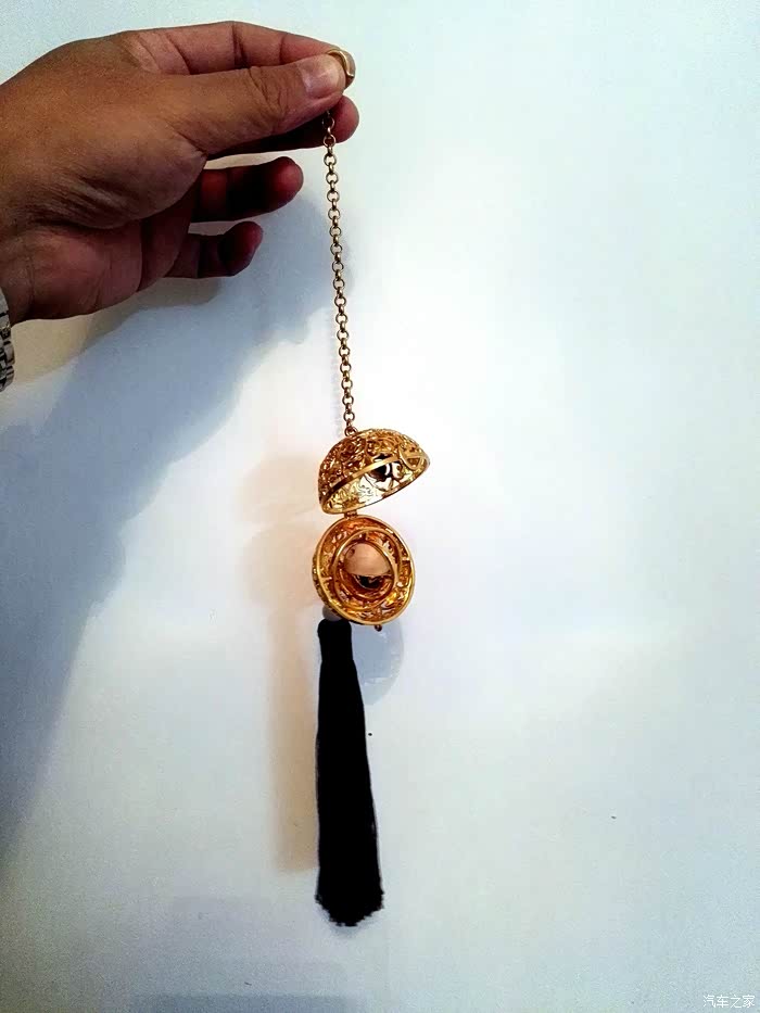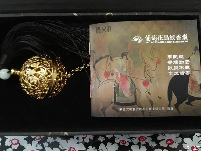 镂空银熏球的相片找不到了,就用这次旅行途中购买的葡萄花鸟纹银香囊来代替吧。