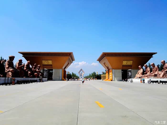 法门寺非常之壮观宏大,这里提几个数据。眼前的这佛光大道长1230米,宽108米,1代表这里供奉着世界上唯一释迦摩尼指骨舍利(其实其他地方还有,笔者按),2代表新旧两座宝塔,3代表佛教三宝“佛、法、僧”。