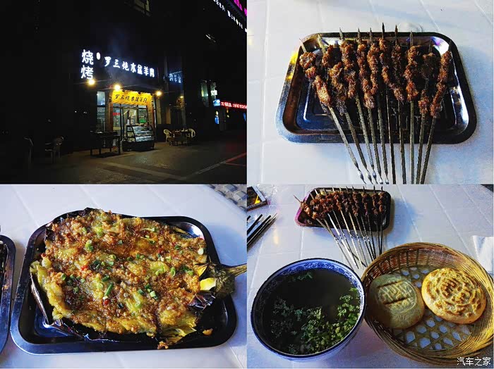 老婆一路上都在吃零食,所以过了晚饭点也不饿,就跳过了晚餐继续行车。宵夜是在万达楼下的烧烤摊吃的,价格特别实惠。