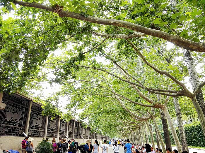 我们是网上订票的,排队的队伍比那些现场订票的短了许多。但也折腾了一个多小时才拿到票进场。这里值得一提的是在售票窗口附近的遮阳篷内设有水雾装置,可以喷出水雾,降温的同时又增加了空气湿度,是一个非常人性化的设备。排队的时候周围的人都说热,但我们来自遥远的南方,所以感觉还行。