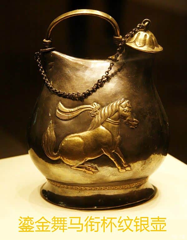 “更有衔杯终宴曲,垂头掉尾醉如泥”,恰恰是那件鎏金银壶上骏马的姿态。于是,银壶有了确切的名字:“鎏金舞马衔杯纹银壶”。