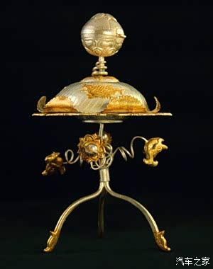总之都是银制球形薰香器。球中心有燃香的香盂,由两个持平环支起,安装时使通过盂身的轴与内外两环的轴互相垂直并交于一点。在香盂本身重量的作用下,盂体始终保持水平状态,无论薰球怎样滚动,香火总不会倾洒,它的作用原理与现代航空陀螺仪的三自由度万向支架相同。