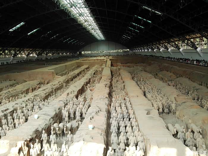当我们8点到的时候,博物馆前的队伍已经排成了长龙,并在街角拐了一个90度的弯,绵延不绝。我们顺着排队的人群一路向前,就是没有多余的车位,就这么一路搜寻一路走,一不小心已经到了直线距离500米开外的金(购)莎(物)国(中)际(心),只好把车停这里的地下车库,上地面,叫辆的士回到博物馆排队。建议自驾游的朋友去陕西历史博物馆时还是的士或专车方便。