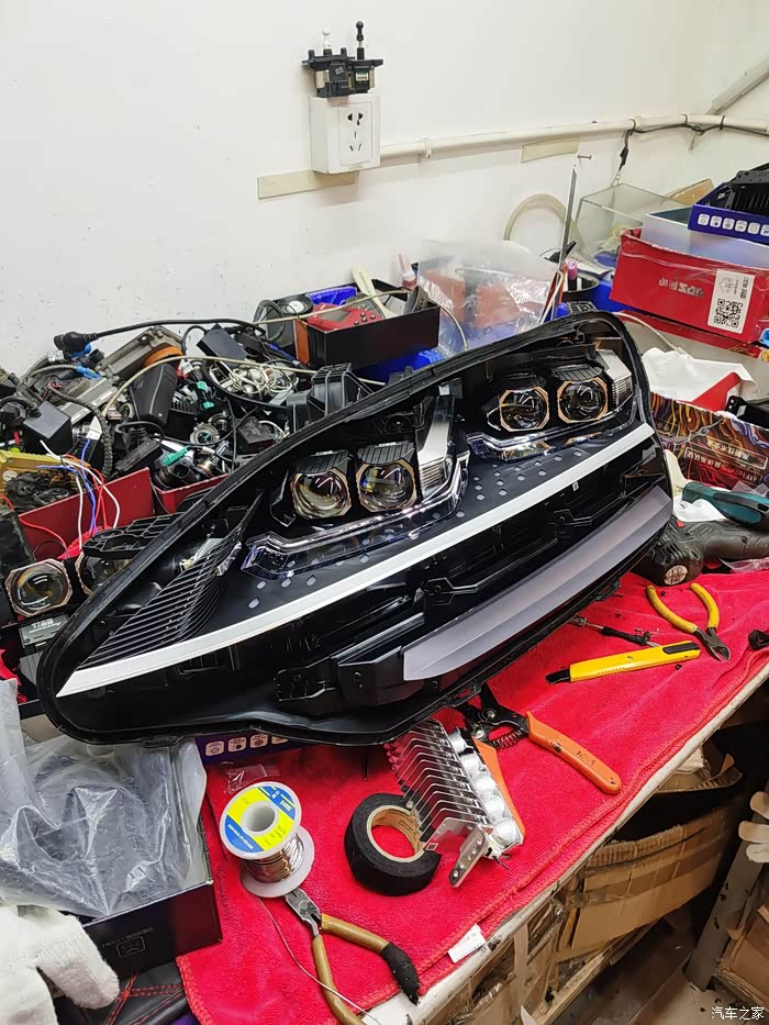 但从始至终对这款车的车灯一言难尽,说它不好用吧,近光也还行,说它好用吧,开远光跟没开一样,所以,决定更换一套矩阵大灯。更换之前和4S店沟通过,改灯不破线的情况下只是大灯的质保没有了,不影响三电终身质保。改灯前大灯功率86W(远光+近光),改灯后大灯功率220W(远光+近光),必须要加线束。