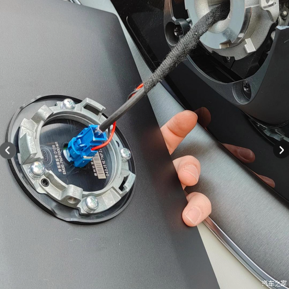 3、全车断电后,取下原车中控屏的插线接头(重点:先断电,再取下插线接头),25款是棕色接头。然后插入15.6寸中控屏插线接头,这个时候中控屏是黑屏状态,车辆通电后需长按滚轮重启车机,新换的中控屏才会亮屏。