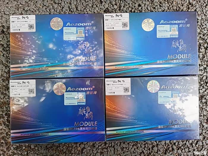 1、澳兹姆1.5寸矩阵大灯一套。一个大灯里面装4个透镜,其中2个双光(38W±3W),1个泛光远光(22W),1个聚光远光(12W)。