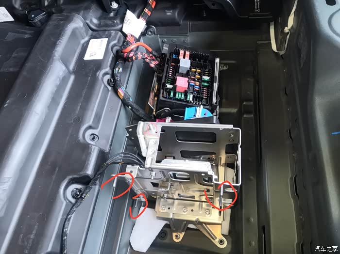 柏林功放。也是个原装位,需要四颗螺丝固定。线束分两边。全部胶布裹好固定按照原厂线束位置走线。