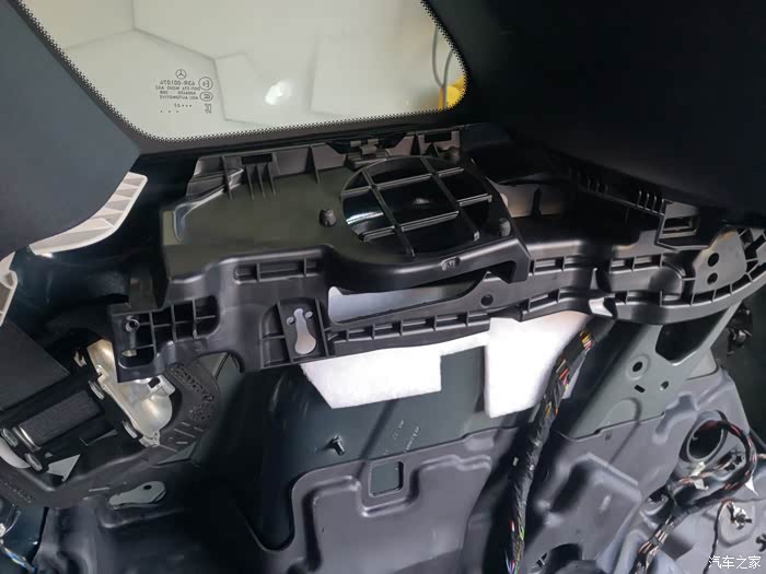 没装抬头显示之前。仪表台这里是封闭的,马上就要开孔了。
